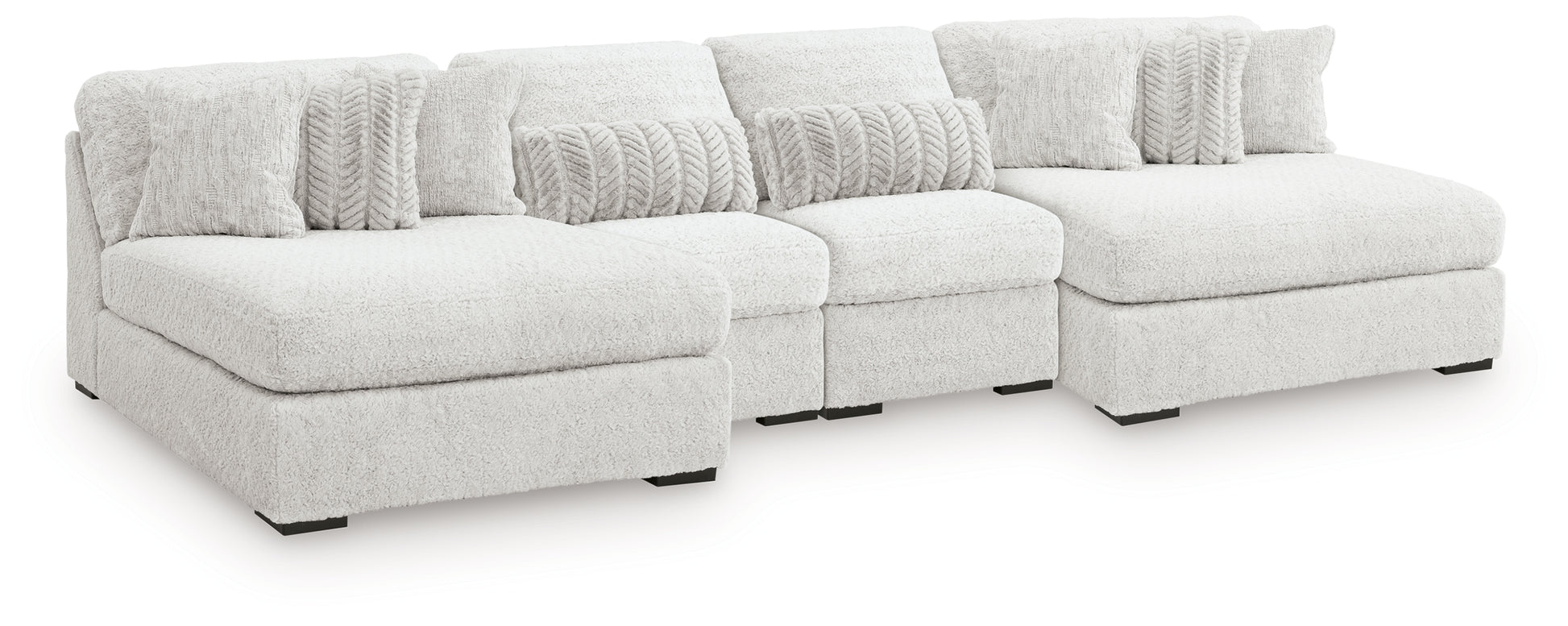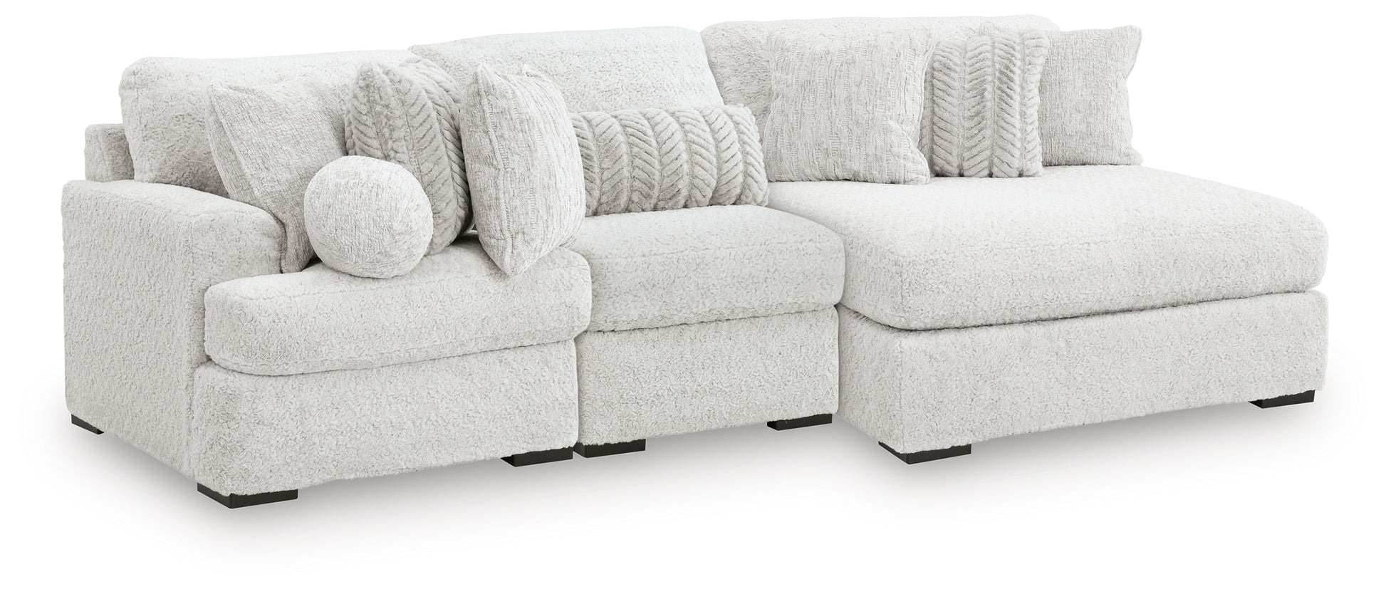 - Includes 3 modular pieces: oversized armless chaise, armless chair and right-arm facing corner chair
