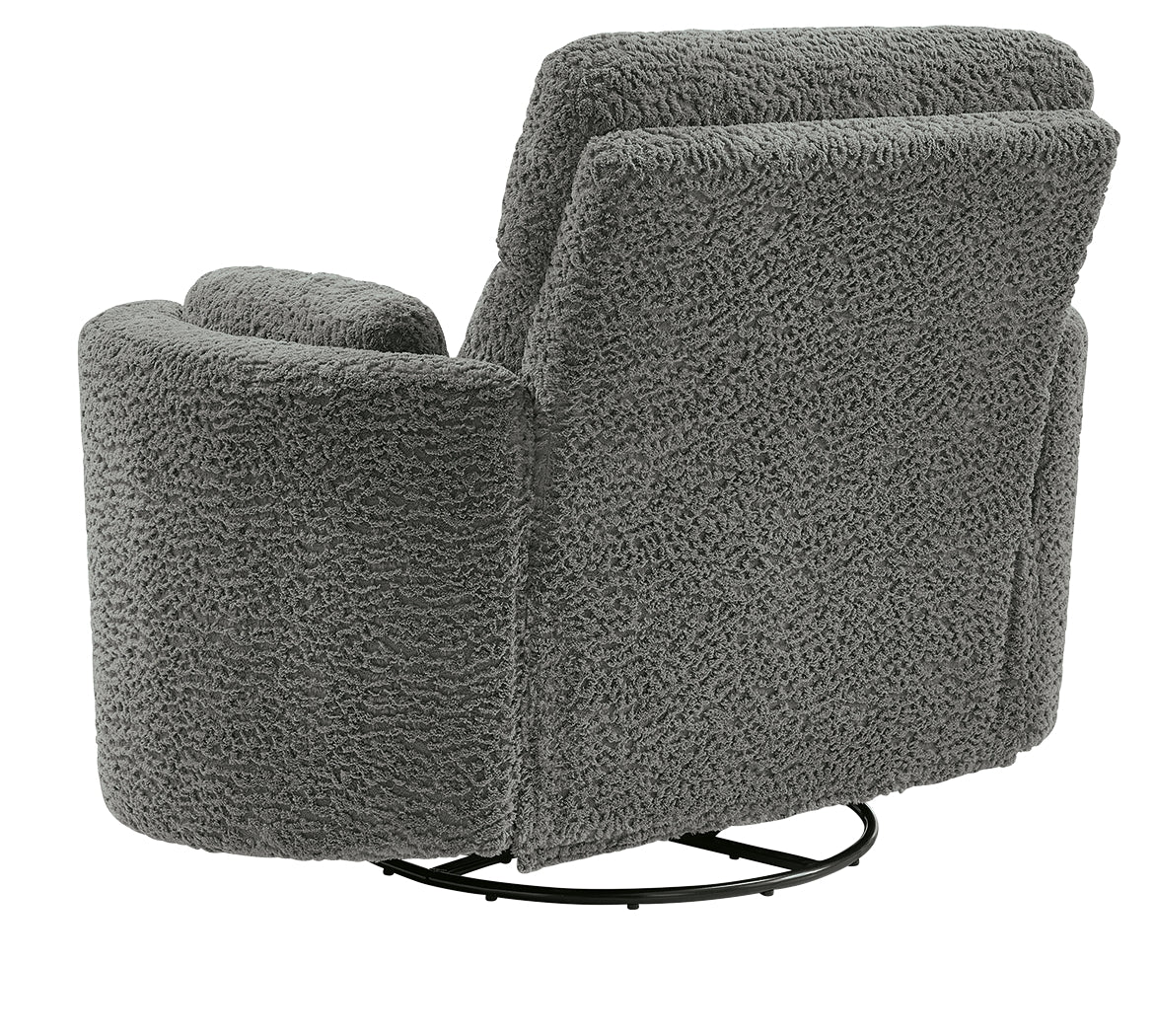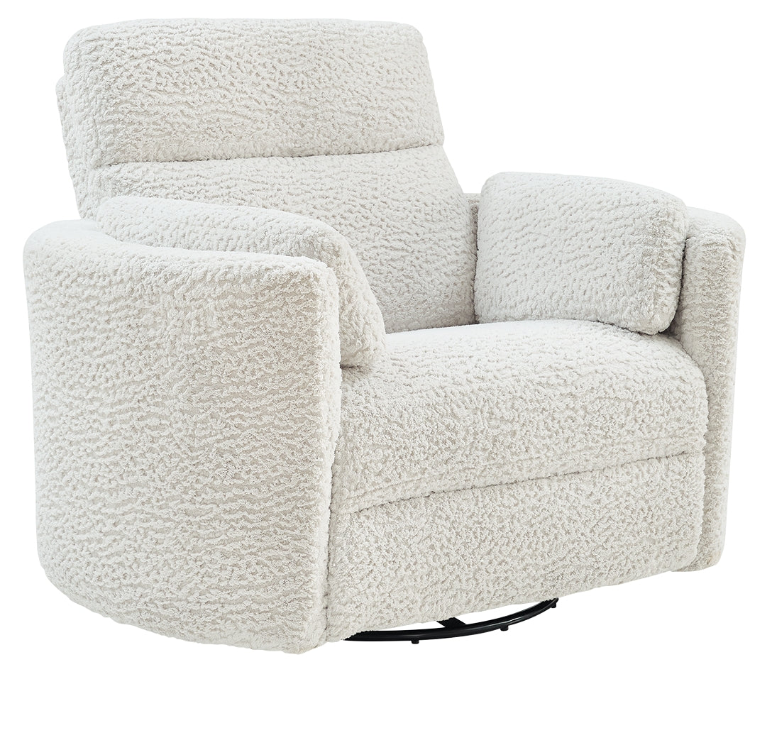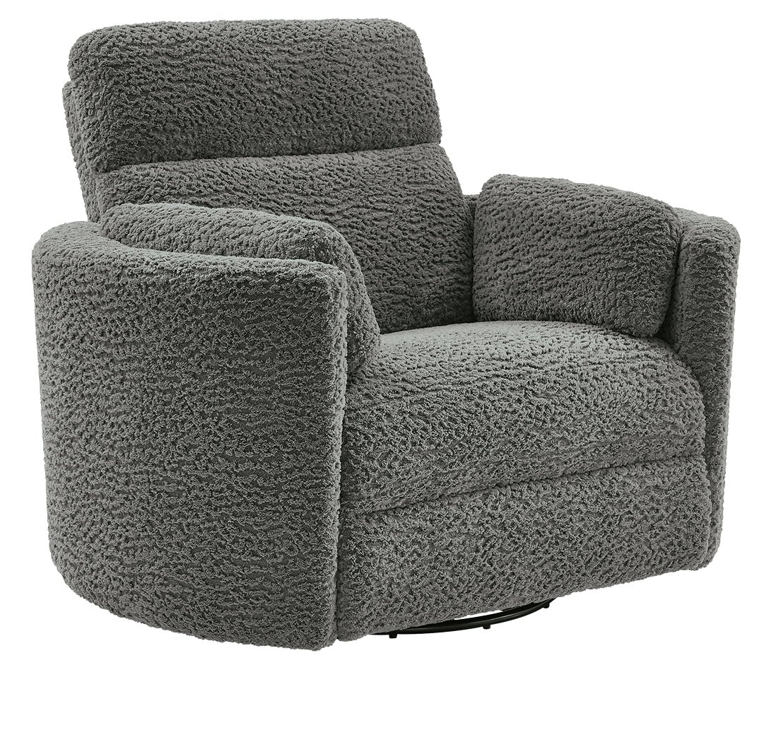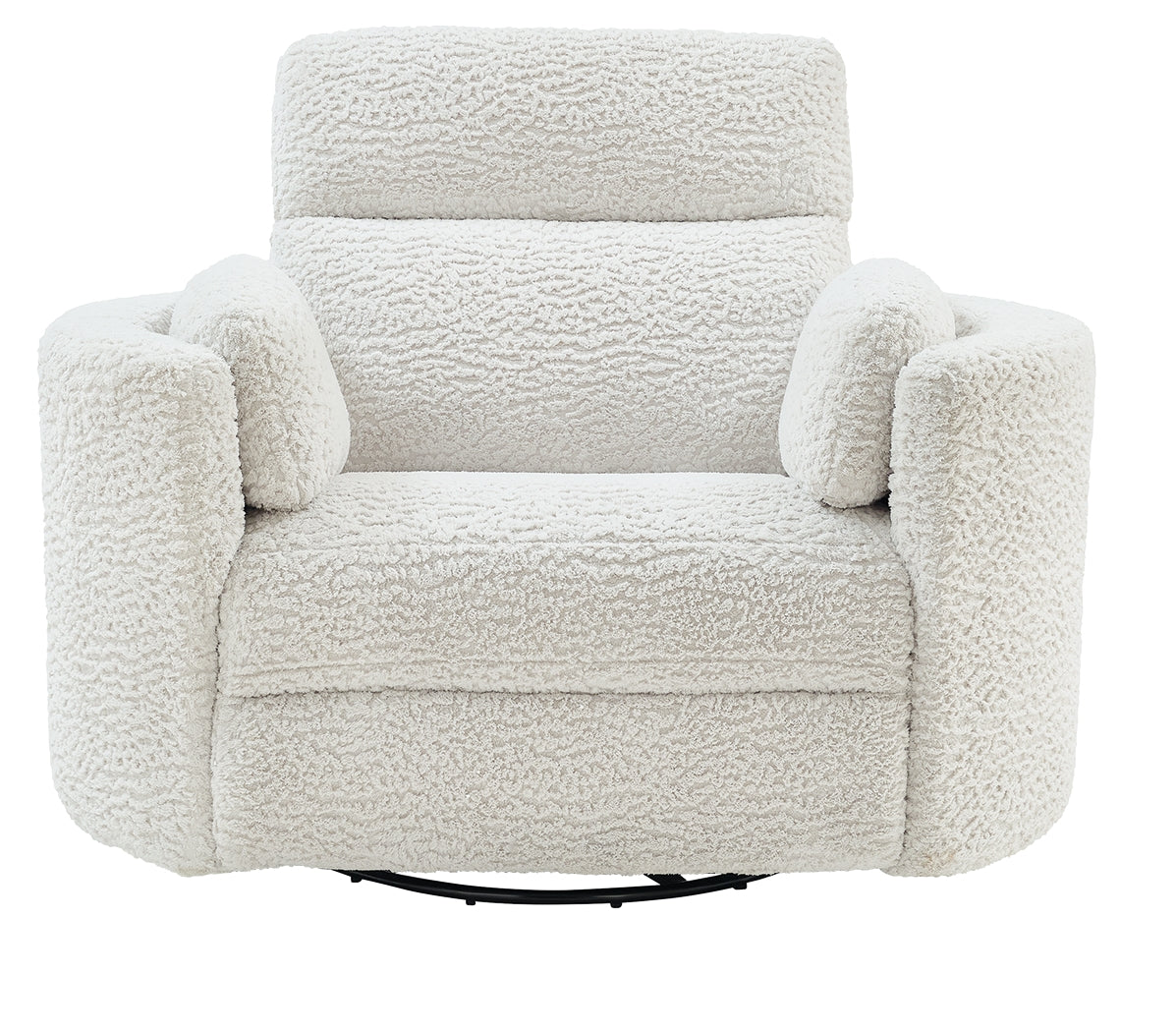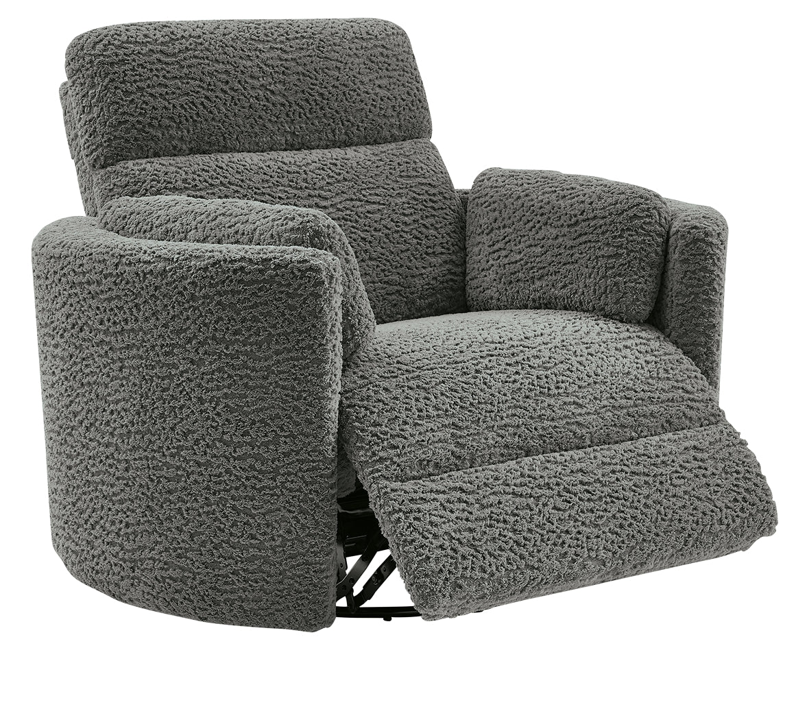 Wrap yourself in cozy comfort with this swivel glider power recliner. The barrel design and plush upholstery create a cocooning seat that’s perfect for movie marathons or late-night reading. Smooth power reclining allows you to always find your ideal lounging position at the touch of a button. Matching bolster pillows amp up the comfort factor, while a gentle gliding motion and a swivel base add more fabulous function. And did we mention the included USB charging?
