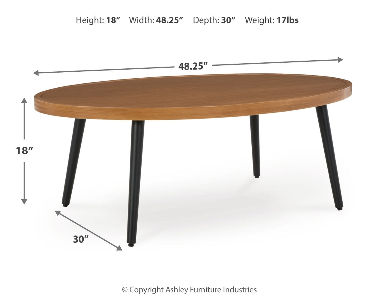This outdoor coffee table recalls the aesthetics of nature to bring an inviting, high-style feel to your patio or lanai. Made of aluminum with a wood look tabletop, it combines beauty and longevity. Worried about the weather? Don’t sweat it—the durable design is made to withstand the elements from season to season.