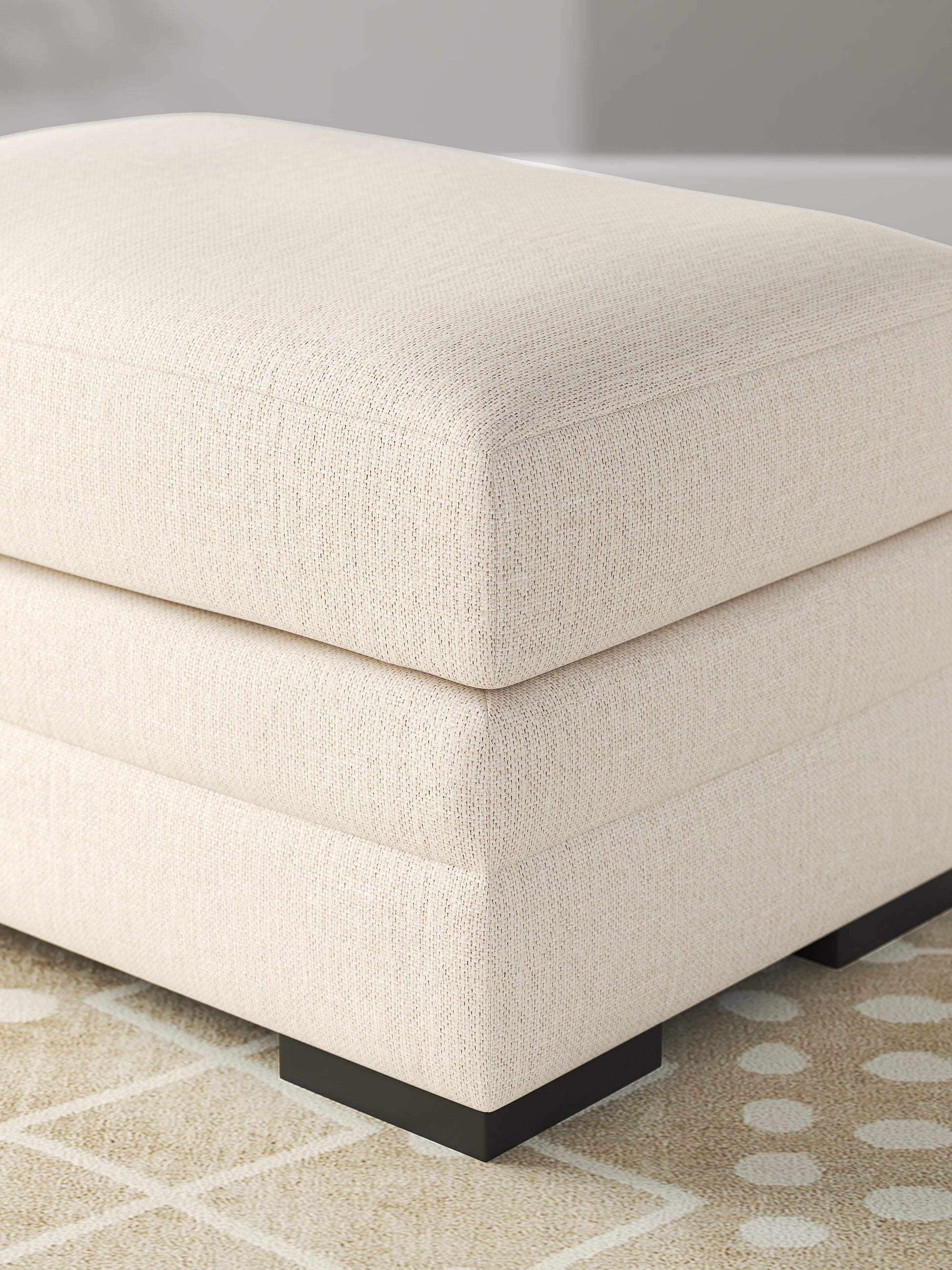 Contemporary flair. Soft neutral fabric that goes with anything and everything. There's a lot to love about this ottoman. With its easy-to-clean Next-Gen Nuvella™ fabric, upkeep is a breeze, making it the perfect choice for high-traffic areas and active households. No worries, just kick up your heels in pure comfort and style.