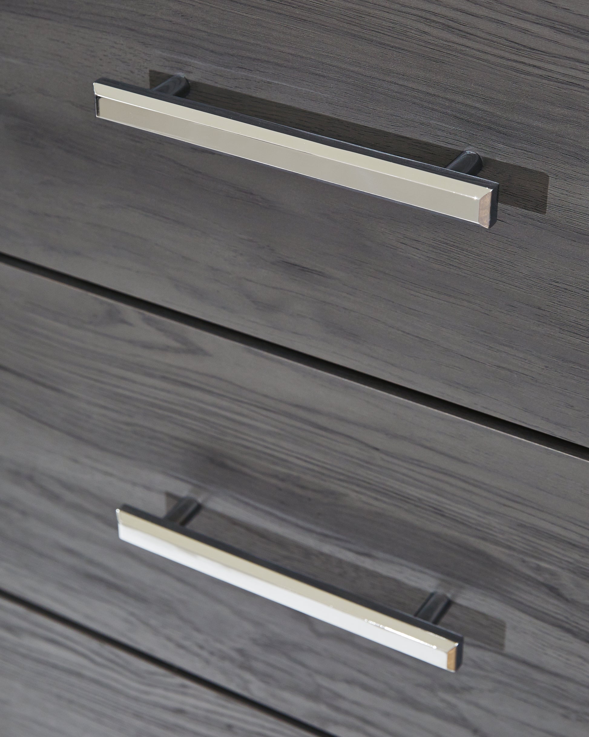 - Gray finish with replicated wood grain