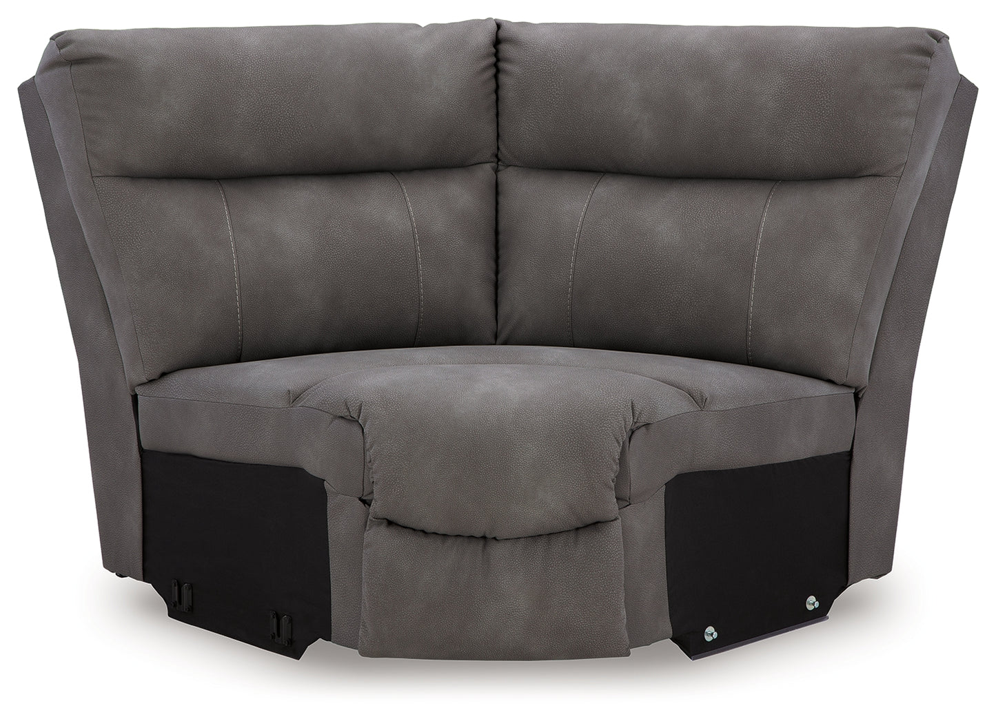 - Includes 6 modular pieces: left-arm facing power recliner, armless chair, wedge, console with storage, power armless recliner and right-arm facing power recliner
