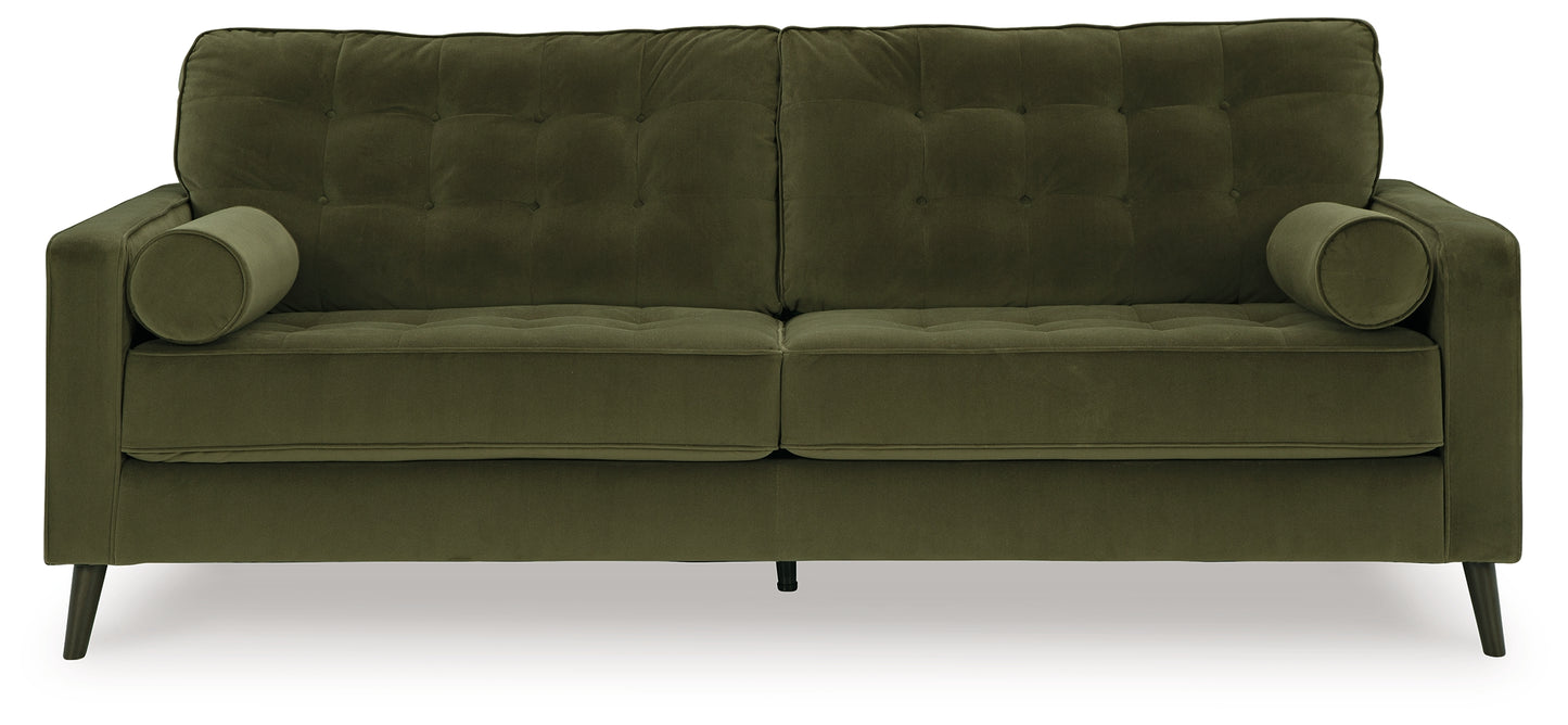 This loveseat strikes the perfect balance between elevated and eclectic. Contemporary lines and a richly hued velvet upholstery keep things chic. Design details like button tufting and splay legs add mod flair. It’s sure to keep your living room luxuriously on trend—at a price that won’t break the bank.