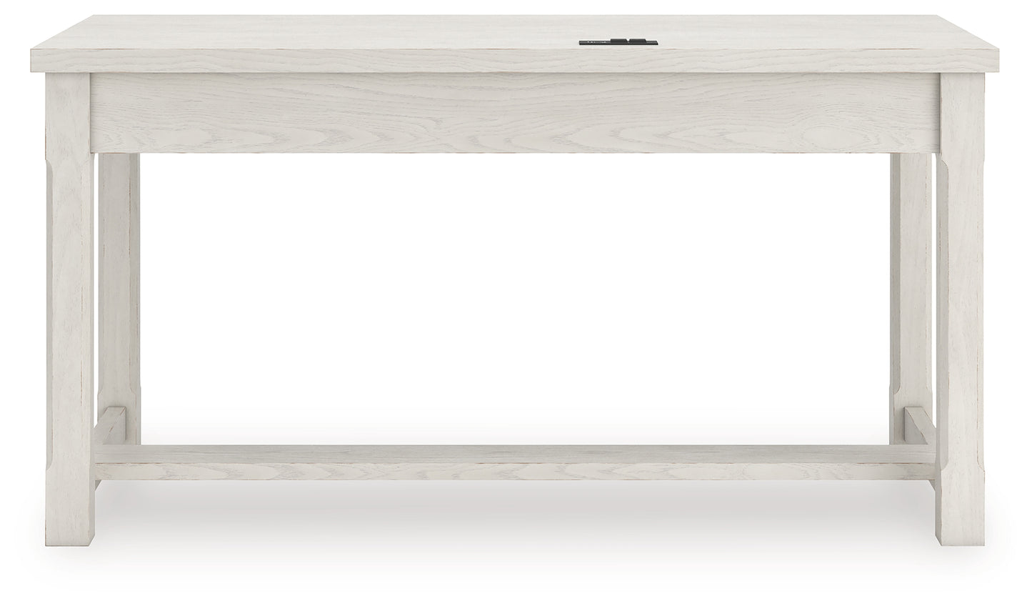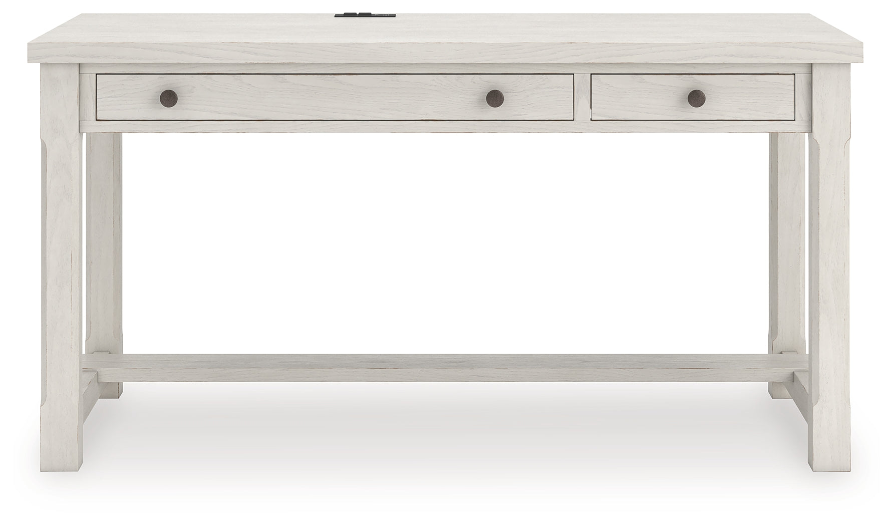 This L-shaped home office desk is sure to impress when it’s time to study or work from home. With its antiqued white finish and wood grain texture, modern farmhouse-style workstations have never been so fashionable. A wide keyboard drawer and convenient USB charging bring function galore to your at-home office. The desk return expands your workspace and adds spacious drawers to keep all your stuff organized. All that’s missing is you.