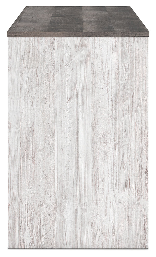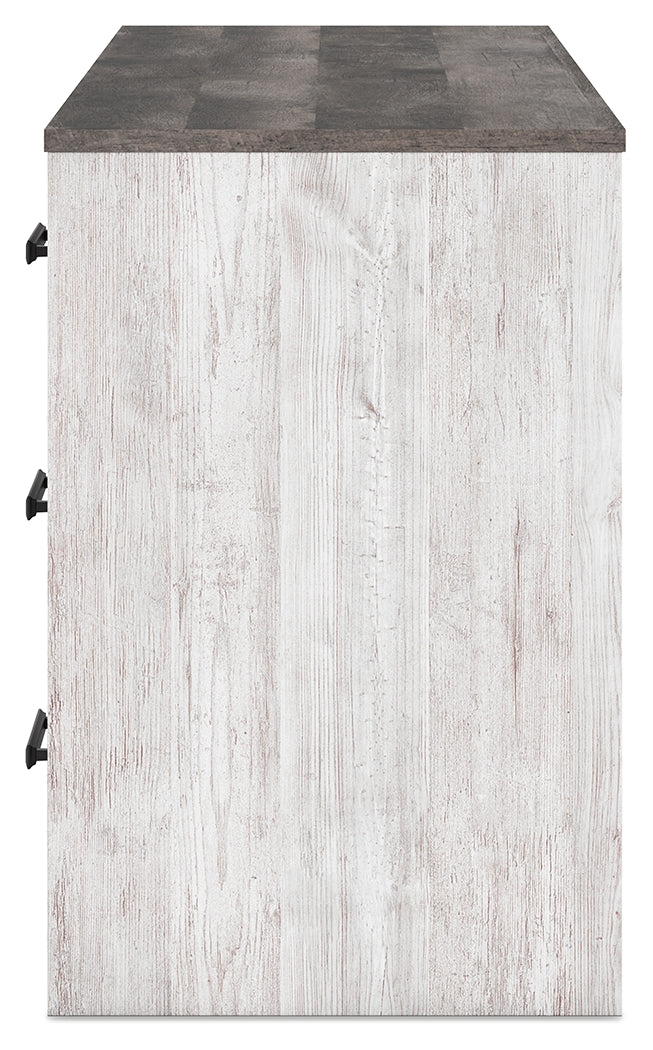 - Top with rustic gray planked replicated oak grain with authentic touch