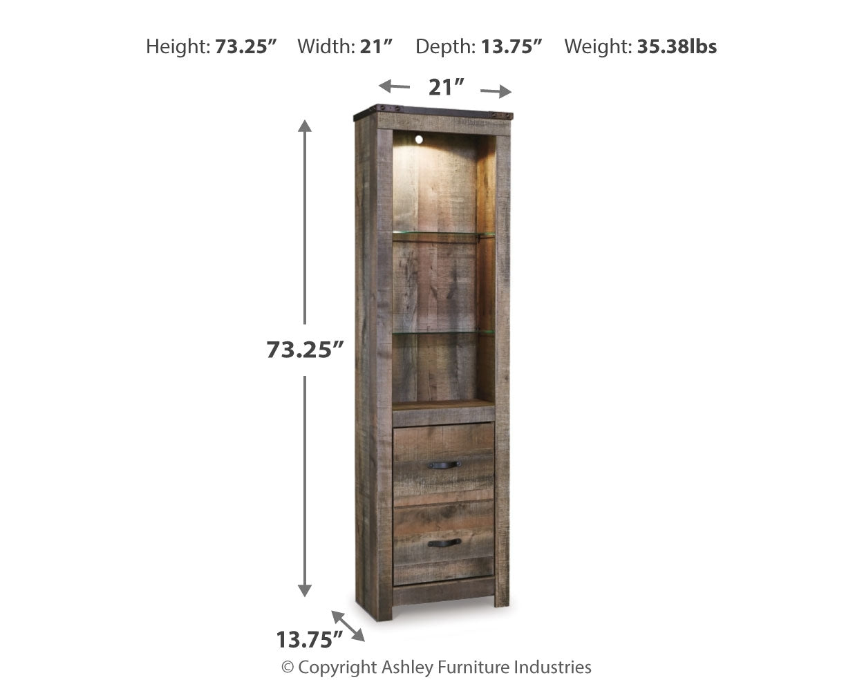 - Tall pier has cabinet with 1 adjustable shelf, 2 adjustable glass shelves and LED lighting; reversible cabinet doors can open left or right with consumer assembly modification