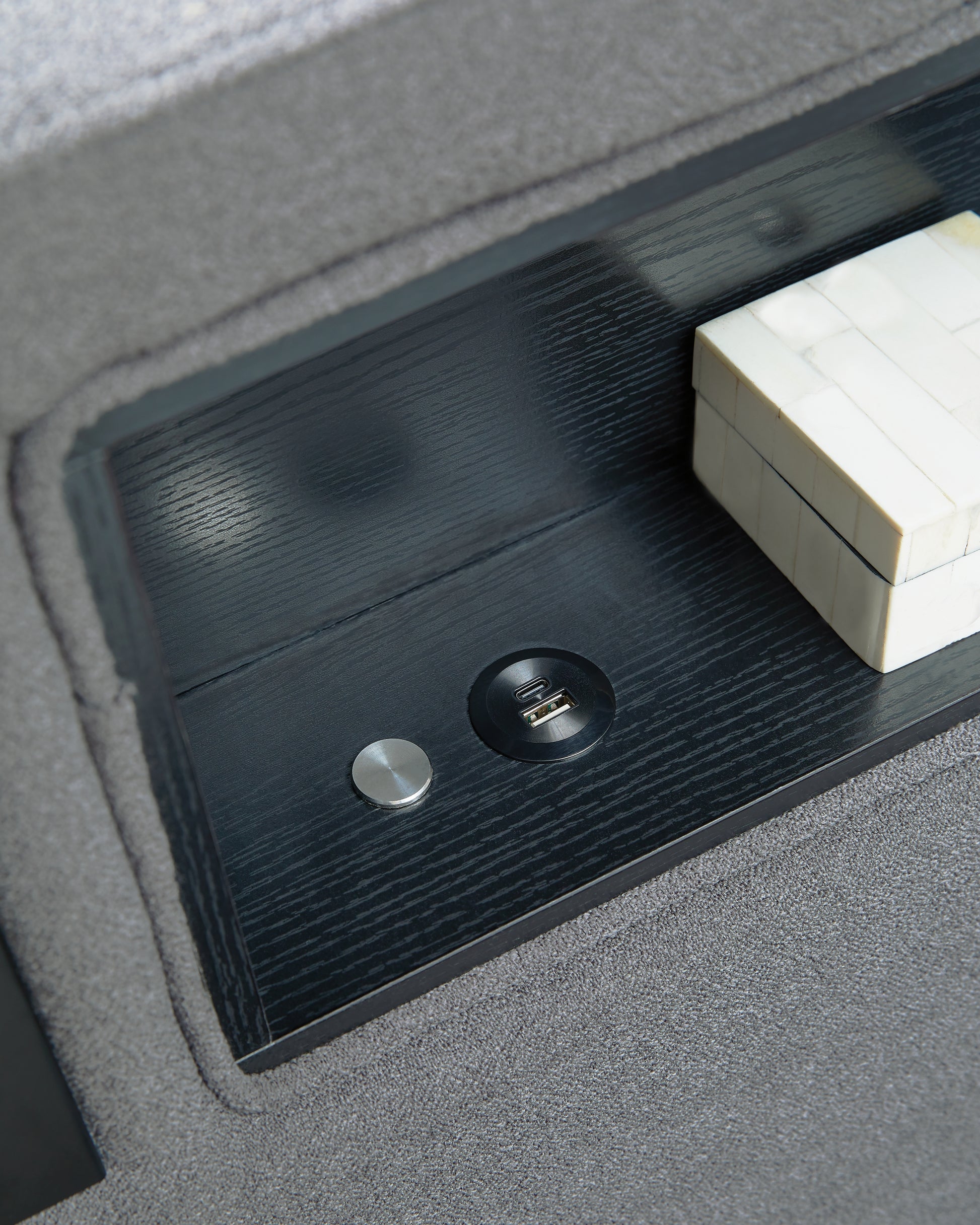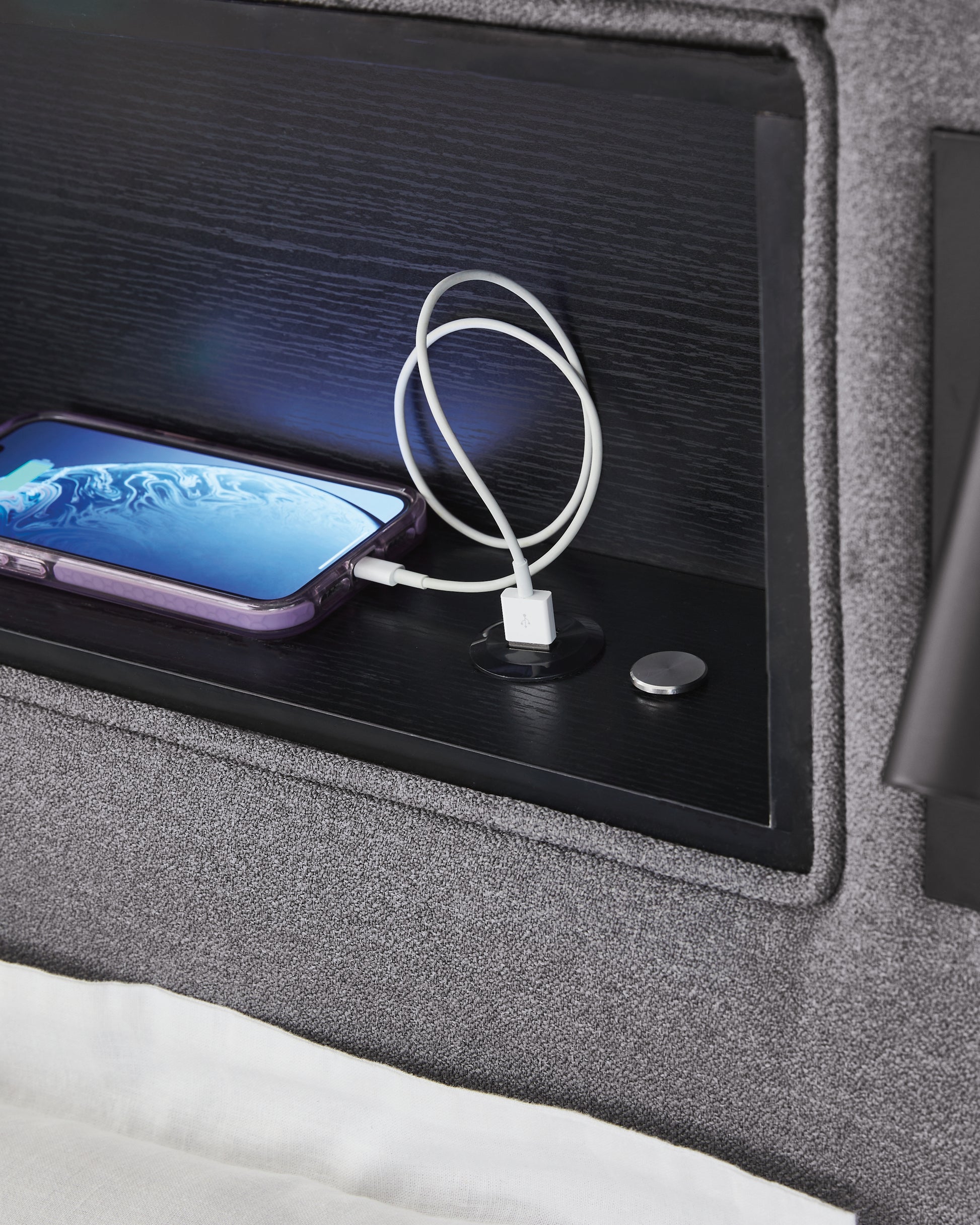 - LED reading light with articulating arm on each side of bed