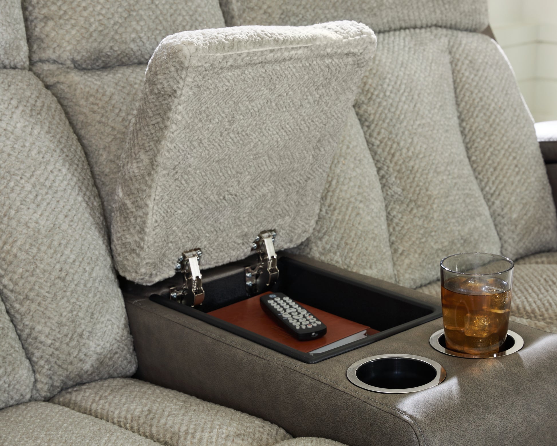 - Storage armrests with 2 cup holders