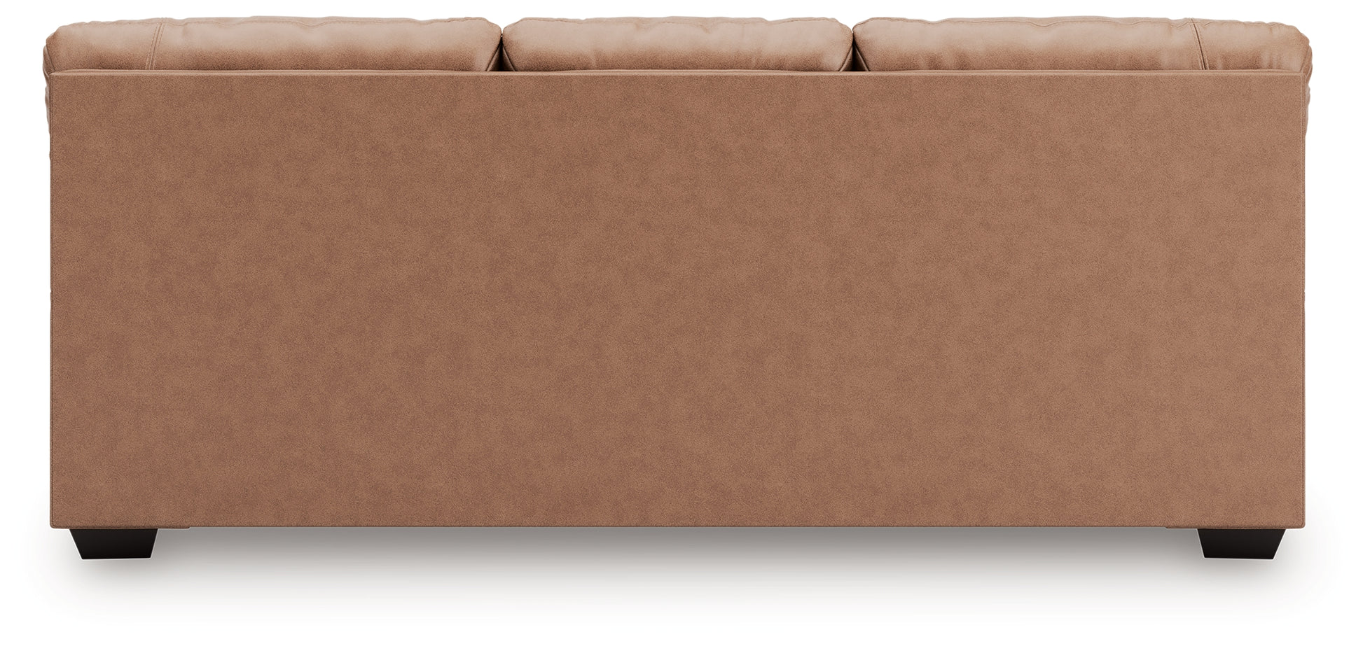 Modern comfort never looked so good. Sporting supremely soft yet durable cushions accented with high-fashion jumbo stitching, this stunning sofa is the ultimate choice in comfortably cool, contemporary style. Its umber-hued faux leather indulges with an upscale feel and wows like the real thing.